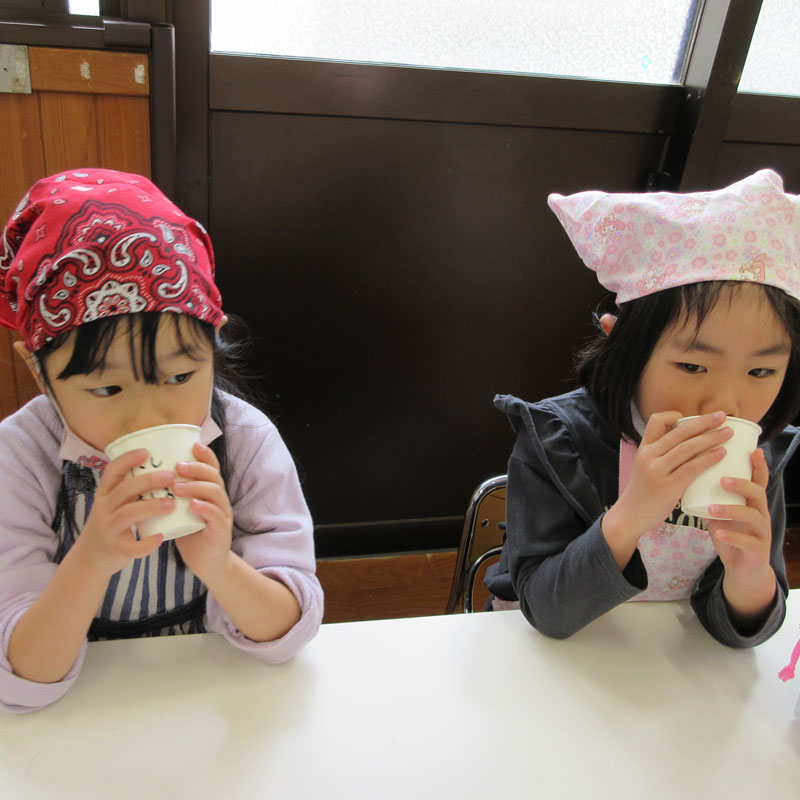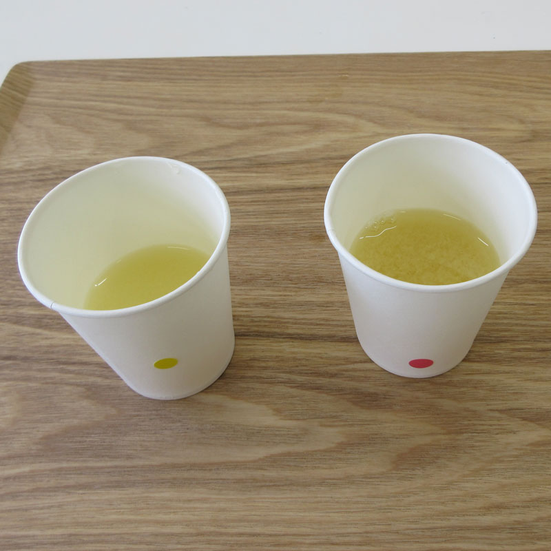 さらに、4種類のだしの味わい比べをした後、クイズ形式で、「4種類のだし有」と「だし無」の味噌汁の味を比較し、だしのうま味を実感してもらいました。