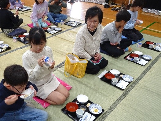 全員で姿勢を正し、農林水産省の牧之瀬食文化室長の「いただきます」の発声とともに給食をいただきました。子どもたちは、美味しそうに、楽しそうに喫食をしていました。
