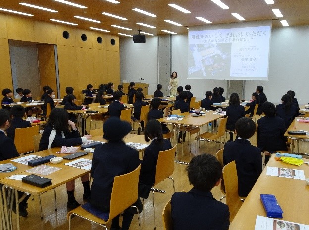 相模女子大小学部の独自科目「つなぐ手」の中で実施されました。本科目は、①コミュニケーションスキル、②志ある人との出会い、③伝統文化、④命と食の学習の4つの柱を中心とし、今回は④の授業として3校時・4校時にて行われました。