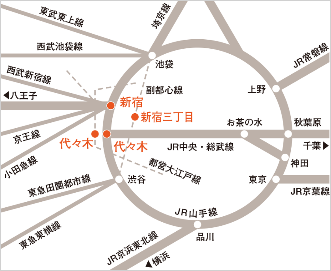 • ・都営大江戸線代々木駅A2出口より徒歩4分