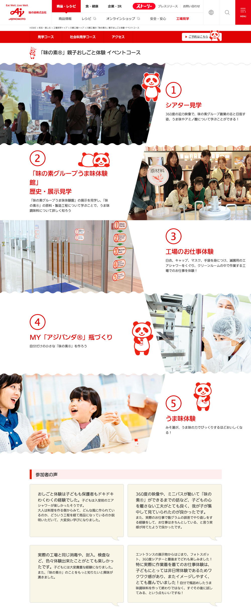 川崎工場:うま味の歴史を学ぶことや試飲体験、包装工程の見学が可能